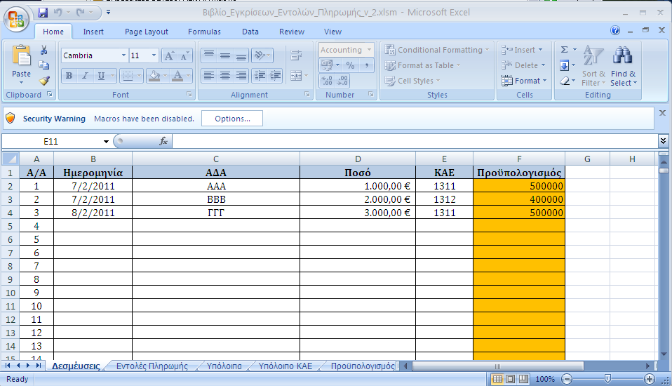 Λογιστικό Φύλλο τήρησης Βιβλίου Εγκρίσεων και Εντολών Πληρωμής